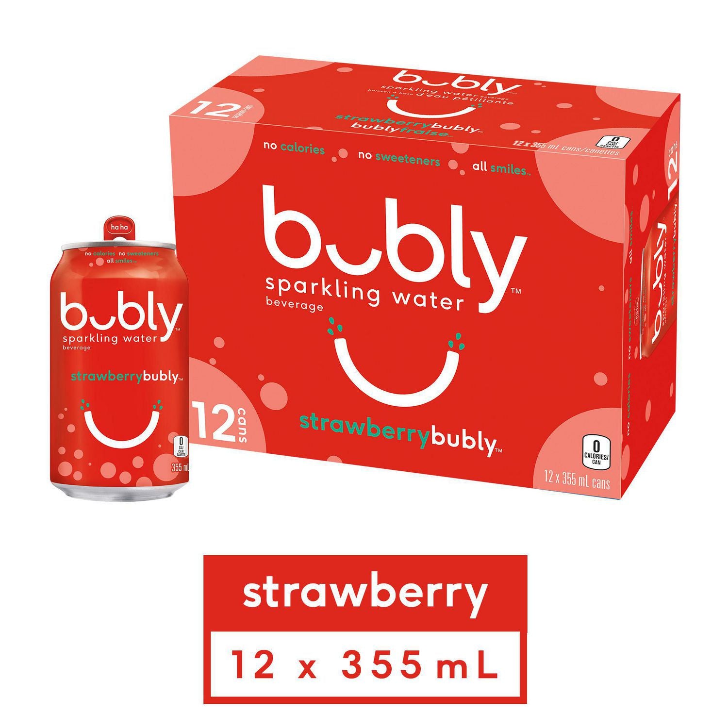 BUBLY STRAWBERRY SPARKLING WATER CANS 12X355ML