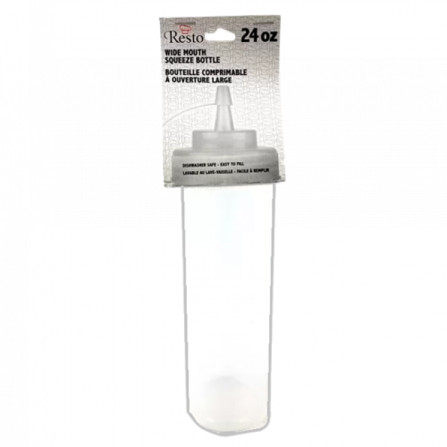 RESTO 24OZ WIDEMOUTH CLEAR SQUEEZE BOTTLE WITH LID 1EA is backordered and will ship as soon as it is back in stock.